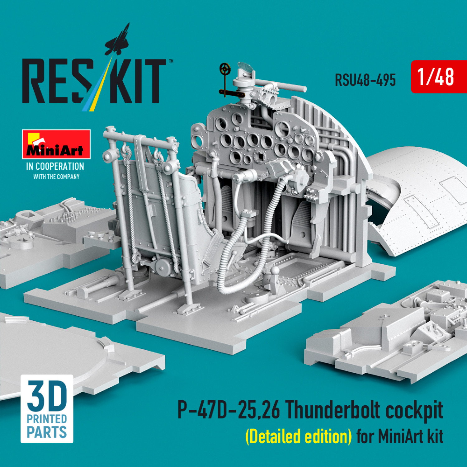 Advanced detailed cockpit upgrade for MiniArt P-47D-25/26 Thunderbolt kits with finely 3D printed pa..