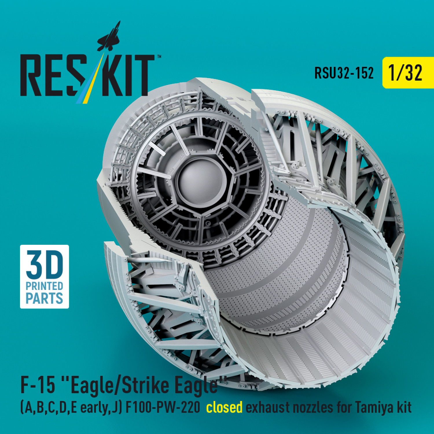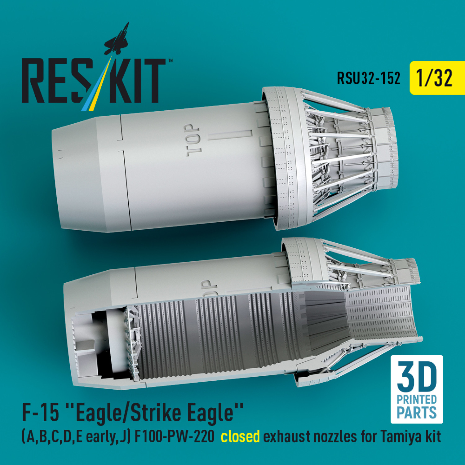 F-15 "Eagle/Strike Eagle" (A,B,C,D,E early,J) F100-PW-220 closed exhaust nozzles for Tamiya kit (3D Printed) (1/32)