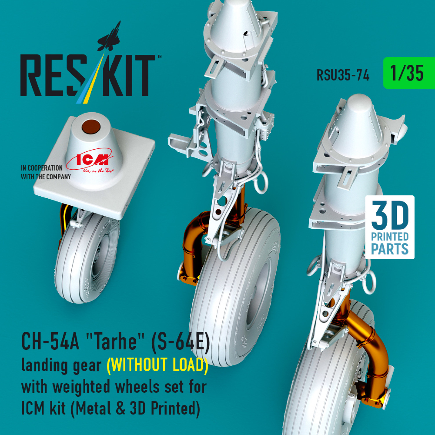 CH-54A "Tarhe" landing gear (WITHOUT LOAD) with weighted wheels set for ICM kit (Metal & 3D Printed) (1/35)