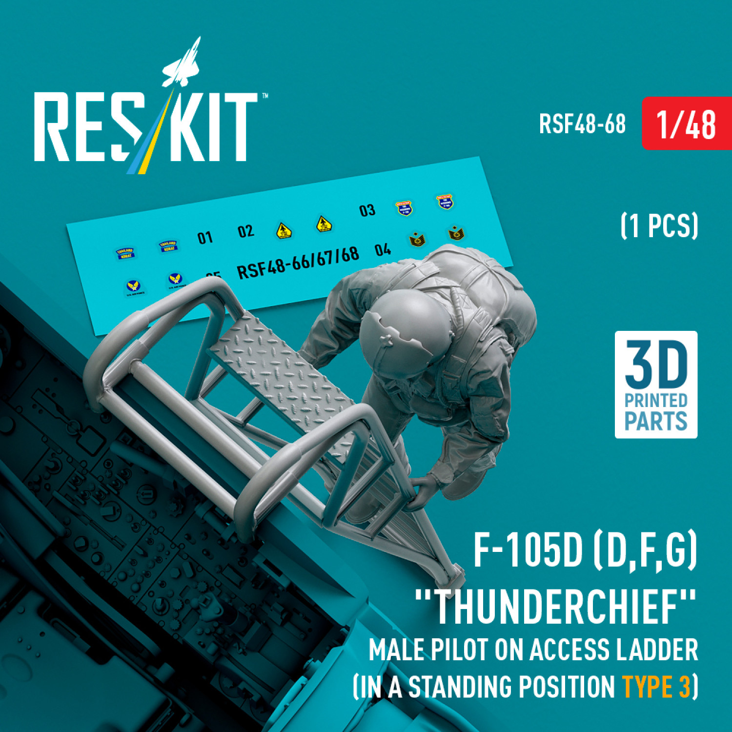 F-105 (D,F,G) "Thunderchief" male pilot on access ladder (in a standing position - type 3) (1 pcs) (3D Printed) (1/48)