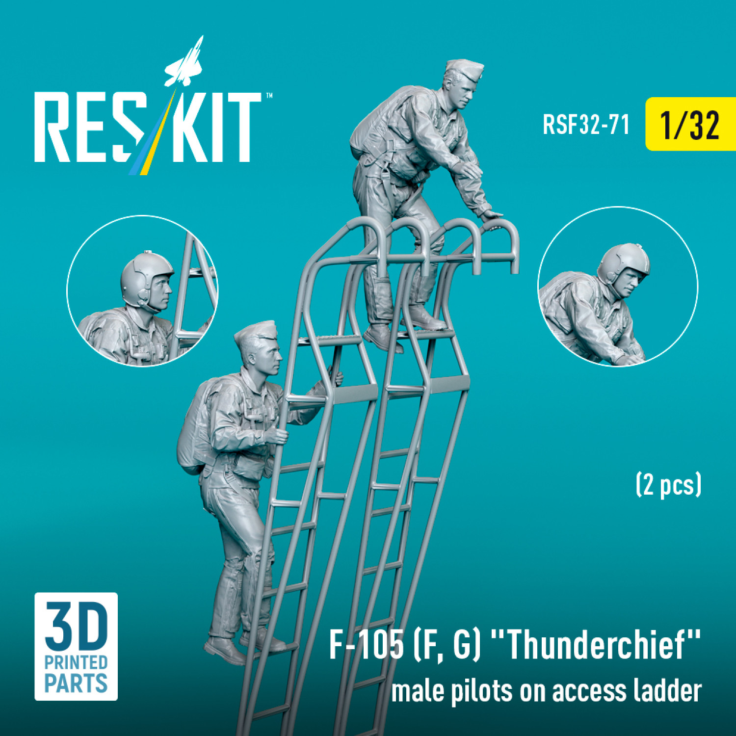 F-105 (F, G) "Thunderchief" male pilots on access ladder (2 pcs) (3D Printed) (1/32)