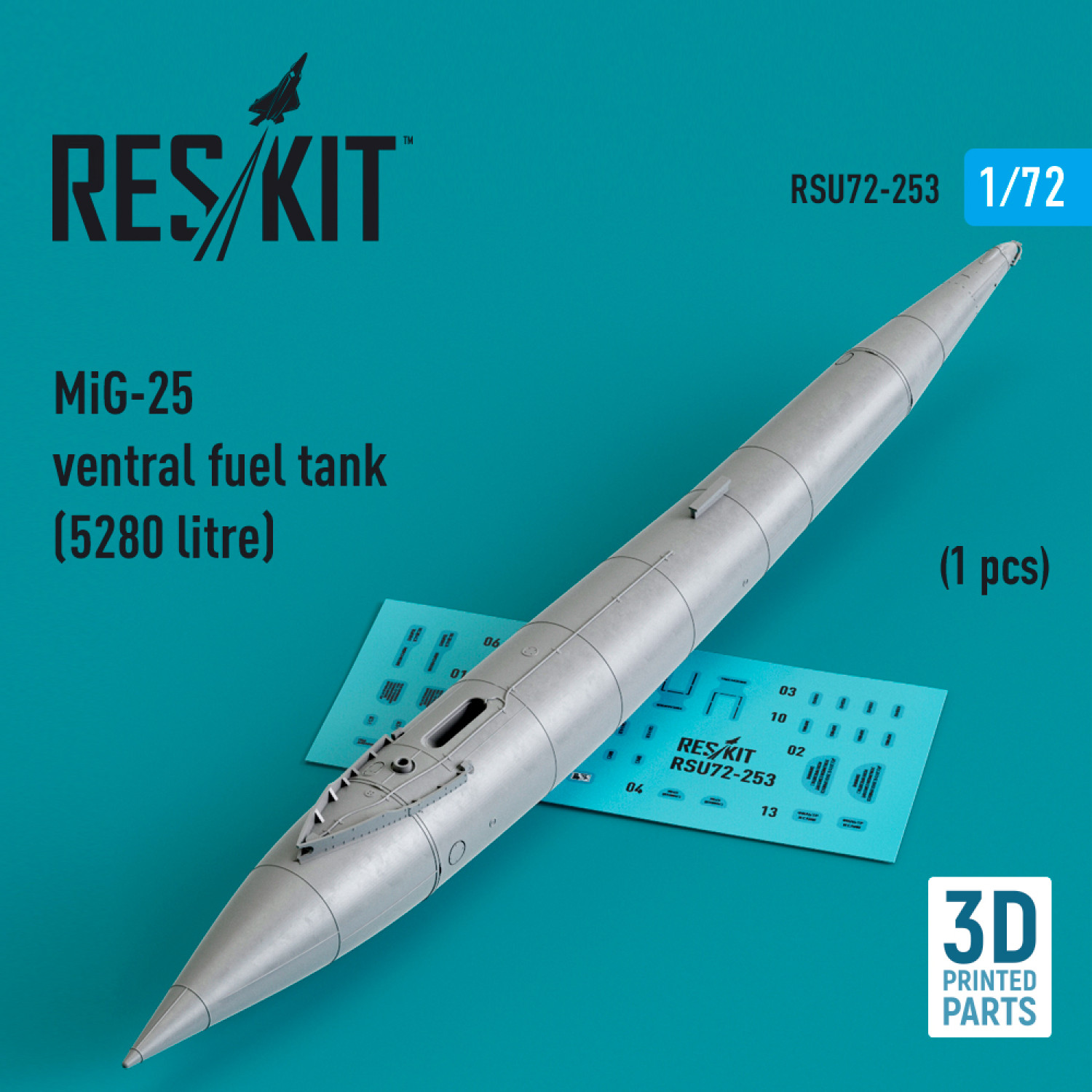 MiG-25 ventral fuel tank (5280 litre) (1 pcs) (3D Printed) (1/72)
