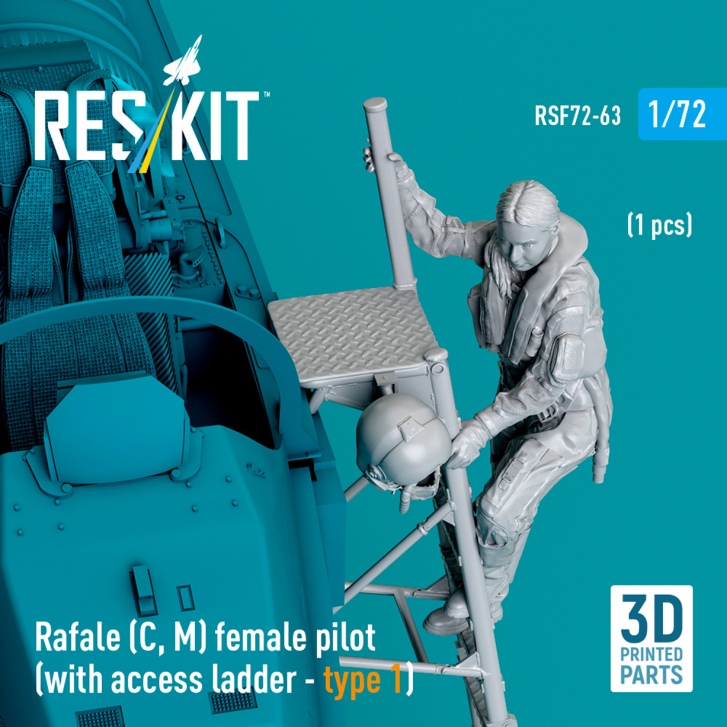 Rafale (C, M) female pilot (with access ladder - type 1) (1 pcs) (3D Printed) (1/72)